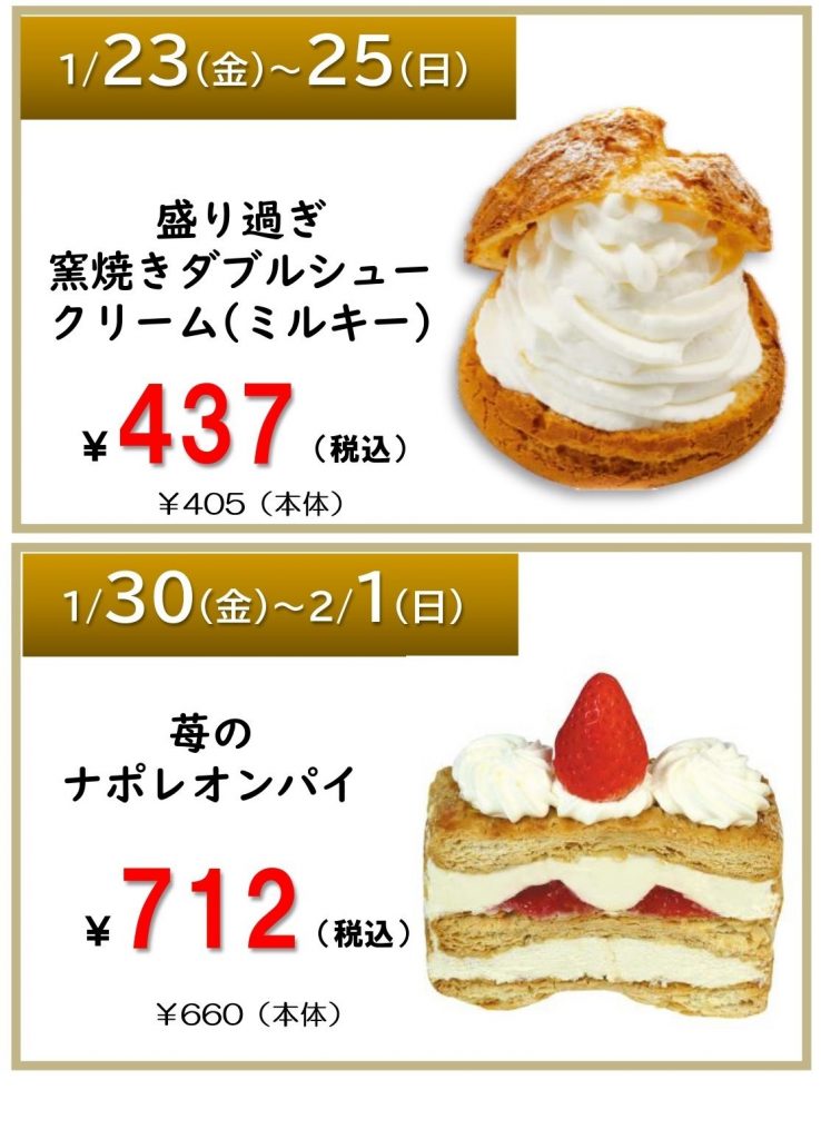 🍰「盛り過ぎ窯焼きダブルシュークリーム(ミルキー)」1/23(金)〜25(日)